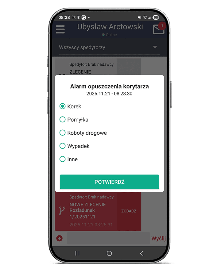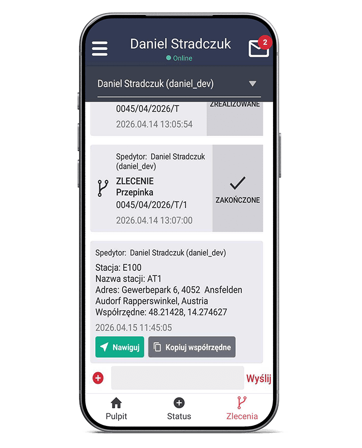 Dyspozytor może komunikować się z kierowcą także poza biurem, a cała wymiana informacji pozostaje dostępna w jednym środowisku. To ułatwia codzienną pracę, ogranicza chaos komunikacyjny i zwiększa kontrolę nad realizacją transportu.