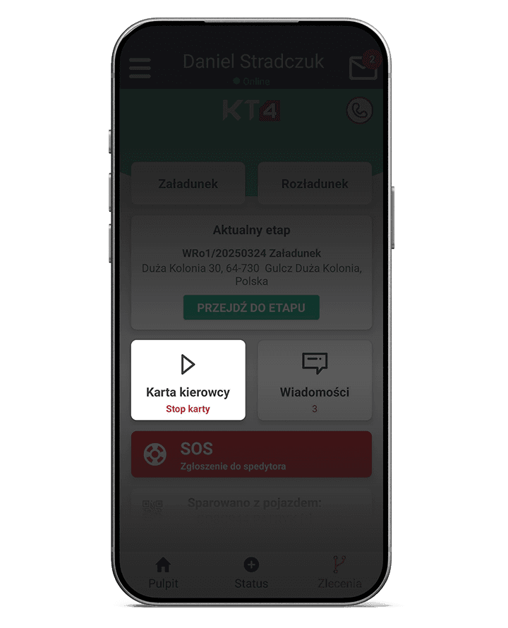 KT4 porządkuje codzienną pracę kierowcy poza biurem i utrzymuje realizację transportu w jednym rytmie z operacją.